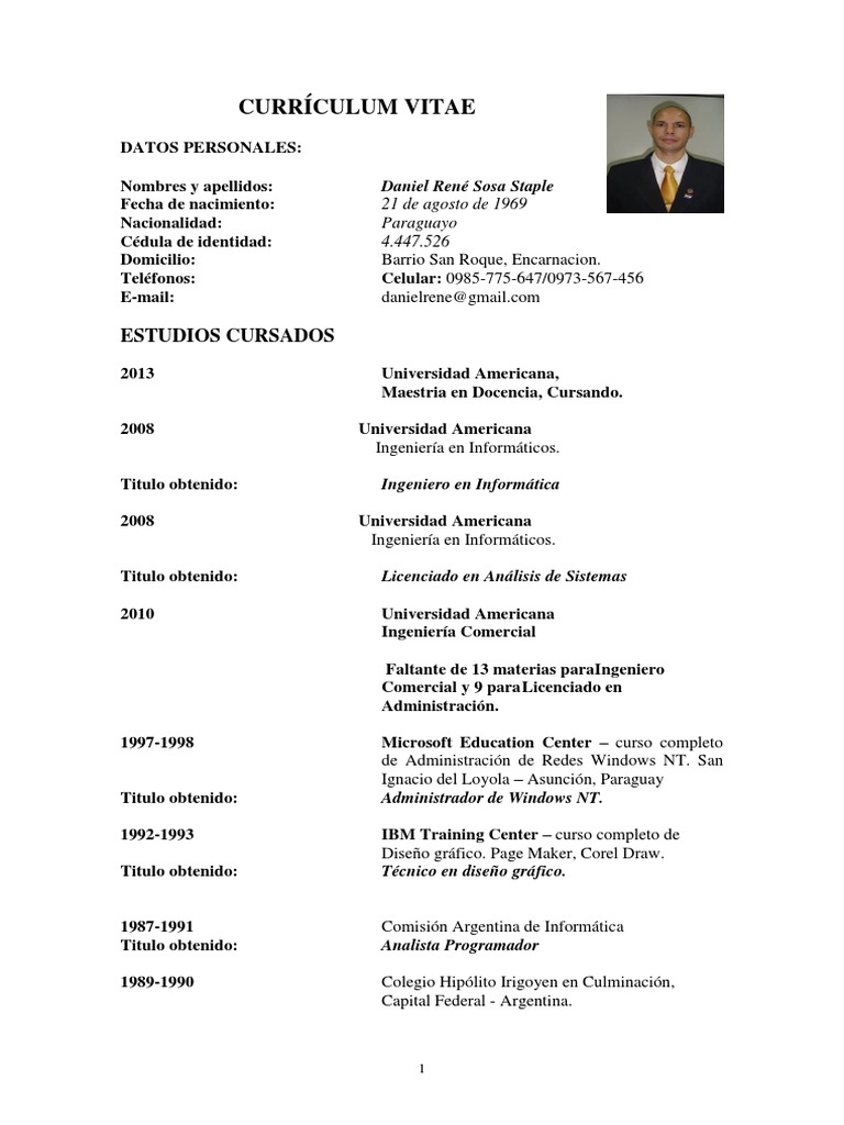 Currículum Vitae Ejemplos Paraguay : Modelo De Curriculum Vitae Mesal / Para hacer tu cv te va ayudar tener ejemplos de currículum vitae gratis.